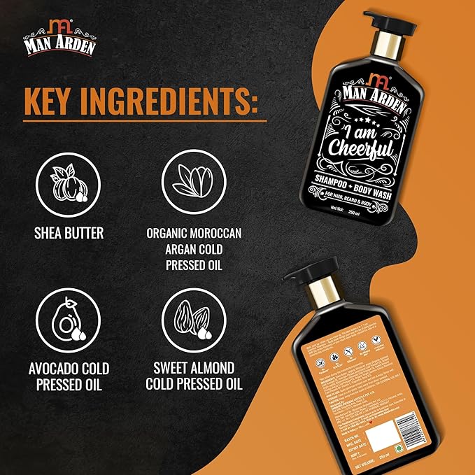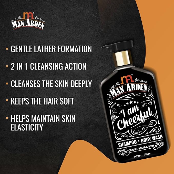 Elevate your daily shower experience to a new level with MAN ARDEN - I AM CHEERFUL Shampoo cum Body Wash. This novel product has simplified your daily cleansing ritual by integrating shampoo with body wash.