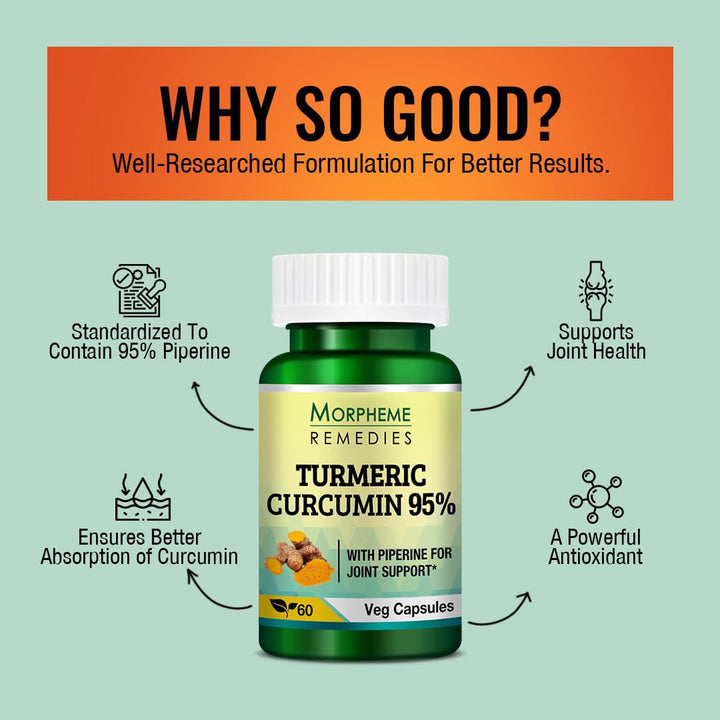 Enhanced Formula with 95% Curcuminoids Curcumin is one of the principal healthful components of turmeric — and the reason turmeric has that characteristic yellow color. A naturally occurring plant-based antioxidant, curcumin helps protect cells against oxidative stress and deterioration, supports cardiovascular health, and promotes healthy joints. Turmeric has 95% curcuminoids (curcumin, demethoxycurcumin, and bisdemethoxycurcumin), the most potent compounds in turmeric root. Increased Bioavailability Despite their extraordinary potential, many herbs can have limited benefits due to poor absorption.