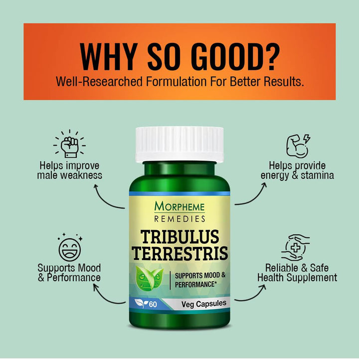 Tribulus Terrestris Helps to increase strength, immunity. An ancient ingredient that is traditionally used for enhancing strength and stamina. Morpheme Tribulus Terrestris contains 500mg Pure Extract. It has been formulated in Vegetarian Capsules and manufactured in GMP certified facility.